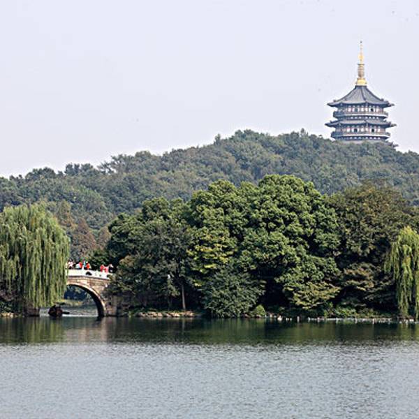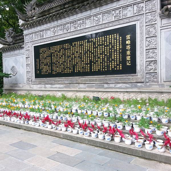 雷峰夕照是著名的西湖十大景之一。许仙与白娘子的传说可谓家喻户晓,传说中的白娘子就是压在雷锋塔下,因而演绎了很多关于雷峰塔的传说。高中语文课文中选取了鲁迅的文章《论雷峰塔的倒掉》,对雷峰塔又一重大的普及。使的很多人向往............,现实中的雷峰塔是现代人修建的,为了恢复雷峰夕照那一景区,现在,在孤山那一带,隔湖就能望到雷峰塔的雄姿,真正到达景区后我建议大家还是不要着急买票上楼参观,因为门票的价格超越了你旅游的收获,我至少认为不太值,就在景区附近感受一下气氛就成了。马路对面就是著名的敕建净慈寺,倒是值得一看,南宋杨万里的一首诗《晓出净慈寺送林子方》写的就是这个地方,映日荷花别样红,很有诗意啊。
