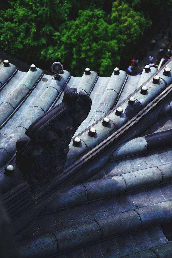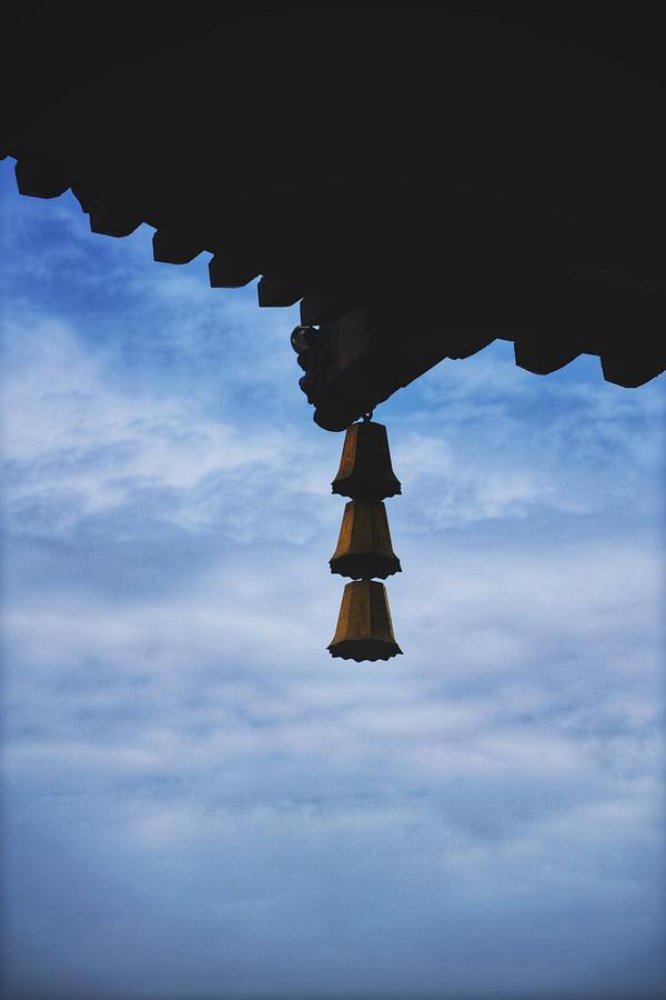新建雷峰塔是我国首座彩色铜雕宝塔,塔檐各层屋面都覆盖铜瓦,每个转角处设铜斗拱,飞檐翼下悬挂有铜制的风铃,轻风拂来,铃声悠远,与山下南屏晚钟相和,禅静和谐。