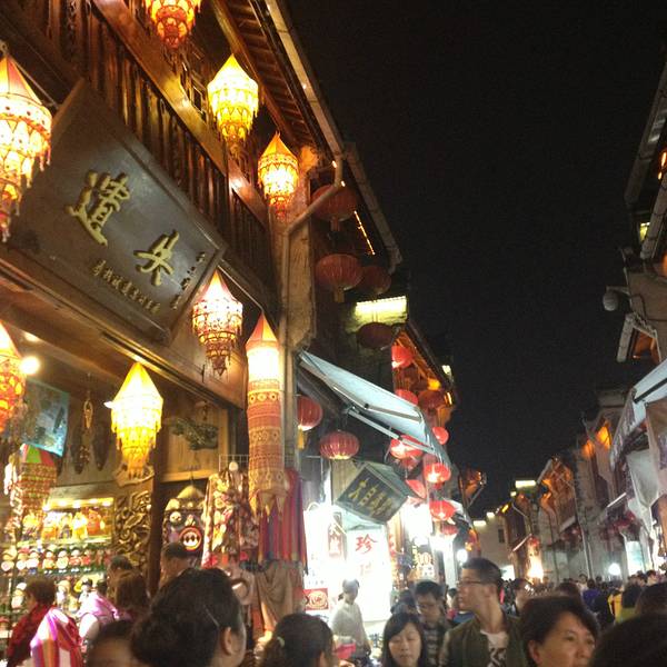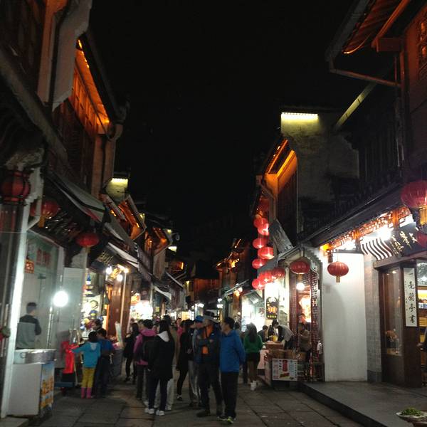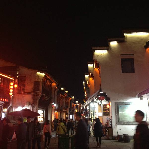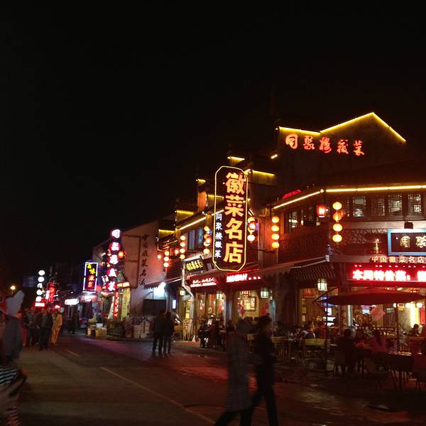 抵达市区以后我赶紧赶回酒店换衣服换鞋,在酒店附近随便吃了点晚餐以后就又赶往屯溪老街。屯溪老街自称是活动着的《清明上河图》,古风建筑确实不少,不过同开封依照《清明上河图》修建的清明上河园相比,却是差了几分意味了。因为已经到了晚上,所以街上灯光多于人影,并不是屯溪老街自称是活动着的《清明上河图》,古风建筑确实不少,不过同开封依照《清明上河图》修建的清明上河园相比,却是差了几分意味了。因为已经到了晚上,所以街上灯光多于人影,并不是很热闹。步行其间,古风扑面,旗幌飘飘,多的是卖酒的商铺,还有些卖的是木制的各种玩具,有能发出蛙叫声的木头蟾蜍,有刻满了三字经的戒尺,还有灯红酒绿的酒吧。我逛了几下便意兴阑珊,幸好同伴们找到了一家卖明信片纪念品的商铺,进去挑了几张明信片,算是给这个的逛街划上了一个圆满的句号。 展开