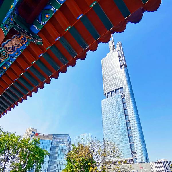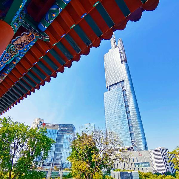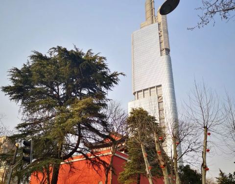 因为,鼓楼的旁边就是南京第一高楼,紫峰大厦。