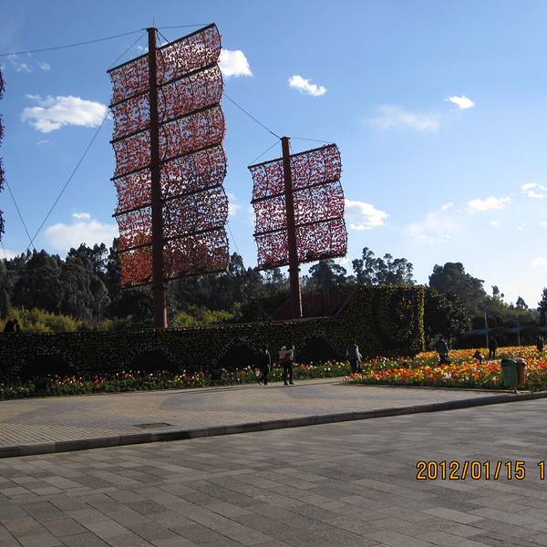 昆明世界园艺博览园又称世博园,位于昆明东北郊的鸣凤山下,距市区约6公里,是1999年昆明世界园艺博览会的会址。园内树木花卉种类繁多,分成多个主题展区,是欣赏植物花卉、园林美景的好去处。 昆明世界园艺博览园园区分室内和室外两部门,由五大展馆:中国馆、国际馆、人与自然馆、科技馆、大温室;六个专题展园:竹园、蔬菜瓜果园、药草园、盆景园、树木园、茶园;三大室外展区:国内室外展区、国际室外展区、企业室外展区组成。园内的建筑艺术和雕塑艺术融为一体,加上各国馆内、园外各种珍贵植物和花卉的装扮,更把昆明世界园艺博览园衬托得五彩缤纷。 1999年世博会结束后,很多国外展区都已经撤走,整个昆明世界园艺博览园变得有些萧索,不过依旧是各个季节赏花的好去处。此外,门票上介绍的几家中国省市展馆的园林布景也非常有味道,值得驻足。园里常有当地老人,在某处聚成一堆,拉着二胡唱小曲儿,别有一番风味。 昆明世界园艺博览园面积很大,小景点和展馆众多,独自步行游览的话,可能需要一整天时间。可以乘坐景区的电瓶车,也可以乘坐园内的观景小火车,随意游逛。