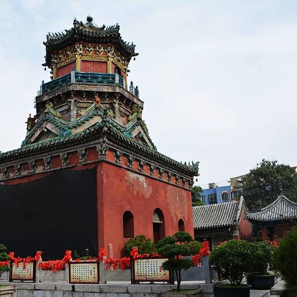 说起延庆观,可能更多人知道的是延庆观炸鸡,只有信奉道教的教徒眼里,它才是一处赫赫有名的圣地。而我之所以知道延庆观,是因为是延庆观和丘处机扯上了关系的原因。延庆观占地面积很小,但分为地上和地下建筑群。地上建筑最为出名的是玉皇阁,据说始建于元朝。值得一提的是,玉皇阁又被称为浮塔,因为开封城是我国北方唯一一座水城,在塔的一米五以下,全是地下水,整座塔相当于建在一个非常庞大的湖泊之上,因此被称为浮塔。如果比较细心的朋友应该会看到玉皇阁四周的排水沟渠,据说每隔2个小时就有人抽水,不抽的话,水就会溢出来,把塔底淹没。最后我给大家介绍下交通、门票各方面的情况:第一,开封市有很多路公交车路过延庆观门口,如火车站的1路公交车,车票1元。第二,门票30元,学生票半价15元,残疾人免费。值得一提的是,大相国寺、开封府都在附近,走路就可以到这两个景点了。