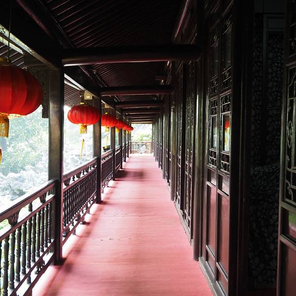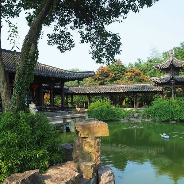 扬州的园林与苏州园林略有不同,这两种风格都是我喜欢的。江南水乡的古建筑都是粉墙黛瓦,这里多用青砖,一样的有韵味。在个园里,竹子是大片大片的而且种类很多,一年四季都能感受到浓浓的绿意,秋天的时候这里也有红叶,假山的造型秀美多姿,但是无论如何总少不了湖边的长廊。