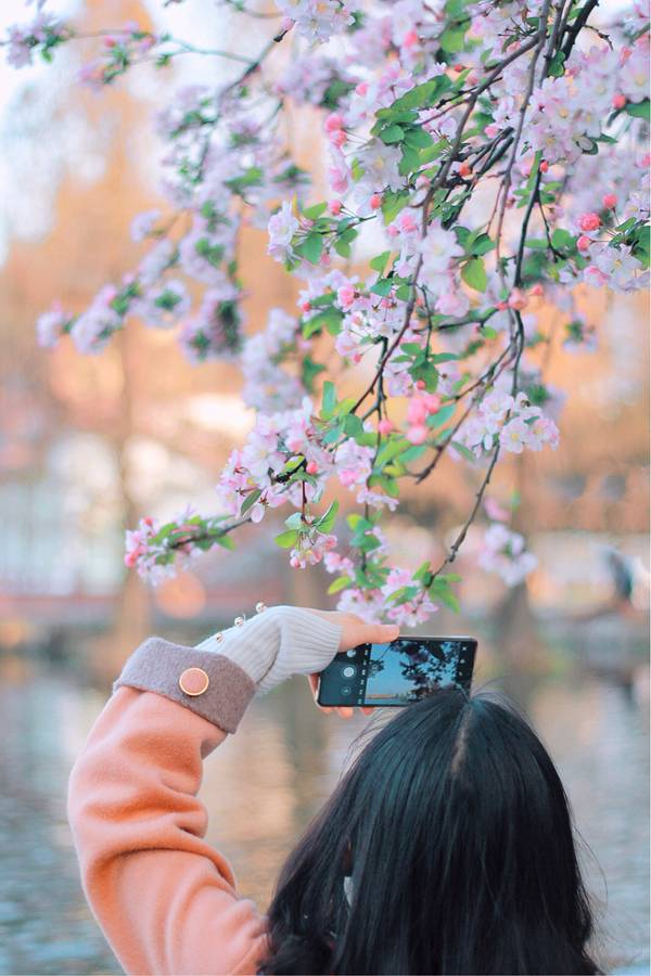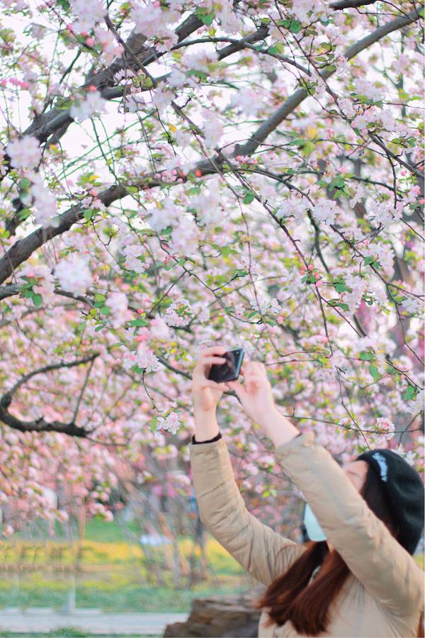 海棠的花期一般是4-5🈷️,但是莫愁湖公园的海棠树已经花满枝头了,现在去赏花非常适合~