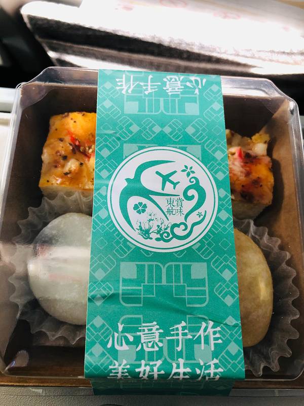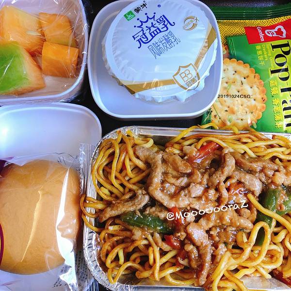 - 飞机餐也不错,鸡丝焖面很好吃,还有酸奶。第一次坐飞机来上海,当然要选择东航