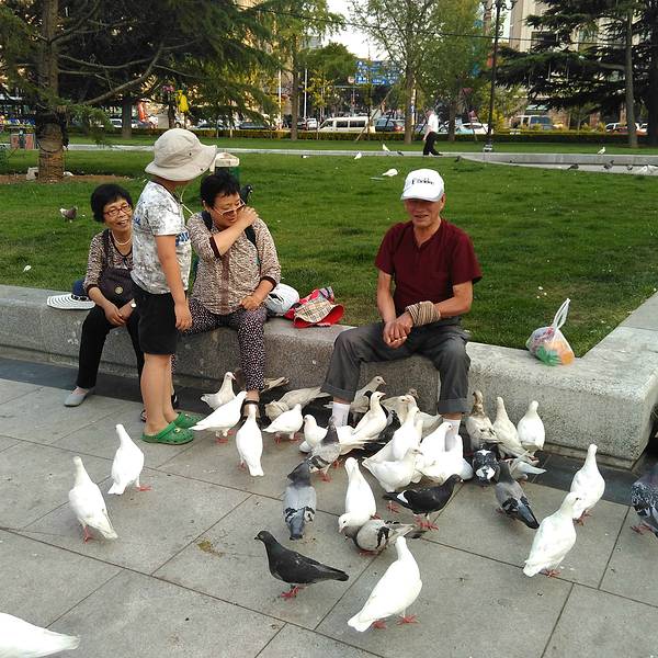 中山公园里面基本上可以看见很多很休闲的老人在这里休息, 还有喂很多飞来的鸽子(这个情景在中国很难看到了), 建议前往时, 带些小面包, 可以在这里体验一下喂鸽子的乐趣。建议跟鸽子一起拍照, 毕竟这种场景是很难看见的。 当然中山公园已是一个休闲的地方,如果在大连市区逛累了, 可以做在这边看著这些有万国风情的建筑, 可以在这边拍照, 画画, 或者坐在这边花呆看看这些来自四面八方的车子, 体验一下繁荣城市的感觉。早上的时候, 可以看见有很多老人在这里打太极, 晚上的时候可以看见很多大妈在这里跳广场舞。