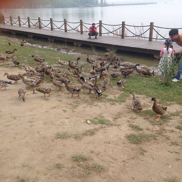 一群鸭子跟在你脚边上等待临行,如果你一直不喂,他们也会在你脚下面哔哔……关于摄影,这次是深秋来的,比较适合的就是芦苇了一片金黄色看过去,确实很美腻建议各位摄影控们带好妹子,妹子们带鲜艳些(红色)的厚衣服,搭配起来还挺好的~来野鸭湖玩耍,春夏秋都比较适宜,园区内会有设置一些桌椅,很适合一家人出来踏春赏景。