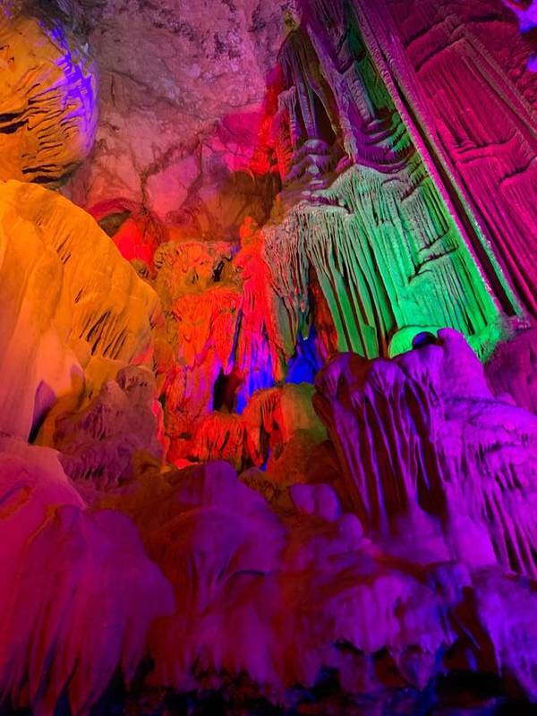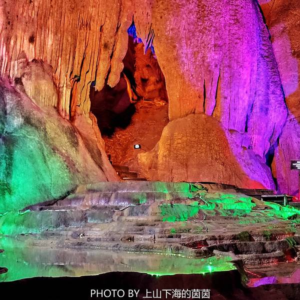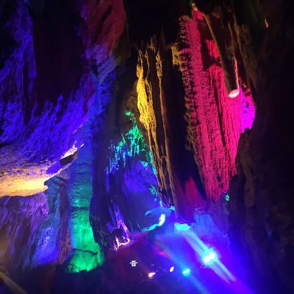 最神奇的溶洞垂云通天河是喀斯特地形,中间地势低,因此周边的河水都是流向这里,进洞是必须要坐船的,还要低头的有的地方很矮,也可以是在桥上观看,有好多的钟乳石,我们站在旁边拍照合影的,五颜六色的仿佛仙境一般。 2017-05-30 10:09
