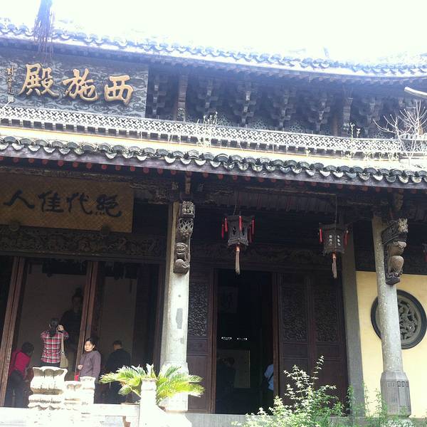 【地理位置】西施殿属于西施故里景区其中的一个景点,位于诸暨市区南侧浣沙江畔,跟西施故里隔江而望。 【交通】西施殿周围没有公交车站,打车也不是很方便,从诸暨市中心可以直接打车到西施殿,西施殿逛完后可以步行到江对面的西施故里走一下。 【最佳观赏季节】春天 西施殿内植物分布非常茂密,万物生长的季节来最好。 【门票】45元 贵啊!!!!!! 【景点情况】官方介绍西施殿占地5000平方米,由门楼、西施殿、古越台、郑旦亭、碑廊、红粉池、沉鱼池、先贤阁等景点构成,进入西施殿时刚好有一个旅游团,我跟着导游走,发现全程半小时就逛完了,重点要介绍的是西施殿内的木质建筑雕刻精美,工艺水平高超,现代摩登大城市已经很难再看得到这么好的工艺了,西施殿面积不大,但是每一处都非常有精致,各种拱门、雕窗真是一步一景,值得慢慢欣赏。