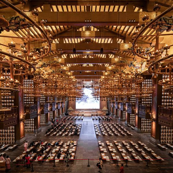 进入大学堂,走过集贤厅,映入眼帘的是大学之道,它是由八十一级台阶组成,两侧设立了长明烛灯,代表了孔子高举生命之道,可沿着台阶步行上去,也可以选择乘坐电梯上下。每天都有定时的互动体验,亲身感受大学之道的仪式,仪式分为初进阶、再进阶、三进阶和终进阶,分别是中庸之道、仁爱之道、良善之道和诚信之道,在工作人员的带领下,拾级而上,感受学问由浅入深的进步。东西长105米的七十二贤廊,是大学堂最重要的文化空间之一,共有31组壁龛,主要从《论语》、《史记》、《左传》等古典典籍中,选取孔子及其弟子的言、行等典型故事,通过活化手法和群雕、情景雕、个人雕等形式,表达尼山圣境所蕴含和倡导的明礼生活方式。七十二贤廊,儒风雅苑,他们并不是伟大孔子的陪衬,个个有着鲜明的个性,也有自己的生活和理想,他们不是被动的受教者,而是儒家学说积极的参与者、创造者、宣传者。孔子大学堂内包括仁、义、礼、智、信五个大厅,每个厅都独具特色,以彩绘、生漆脱胎、书法、粉彩堆白、壁画、铜雕、漆画等形式向我们展示着为人处世的根本,其中仁厅最大,它是一个大型的儒文化图书馆,四周高大的书架一直延伸到屋顶,放满了儒家经典的书籍,可容纳上千人,非常恢宏而大气的设计。如今能静下心来看完一本书的人实在太少,在大学堂里给自己一个机会,在安静的氛围中读一席书,享受文化的熏陶。游客在仁厅都可以参与手抄论语的体验中去,犹如穿越到了两千多年前师生的智慧对话之中。还可以看一场灯光秀,古雅的音乐和灯光交相辉映,让人沉醉其中,是一场很不错的视觉盛宴。而其他四个厅都是围绕仁厅设计的,“义、礼、智、信”根据“四象对应的青龙、白虎、朱雀、玄武在颜色和设计理念的不同而设计出不同的厅。在大学堂里不可错过的就是礼乐堂的《金声玉振》演出了,以乐明礼,以乐行礼,以乐演礼,用优美的舞蹈与音乐、震撼的灯光和剧情打动了很多人,每一帧都是不可错过的美好画面。短短一小时的演出,让我深深感受到了礼仪文化的博大精深,明礼的生活方式继承着中国传统文化,流淌在中华民族血液中……大学堂里有很多就餐的地方,我们选择在八楼餐厅,优雅的环境让吃饭也成了一种享受。菜品种类繁多,可以选择套餐系列,味道很不错。 展开