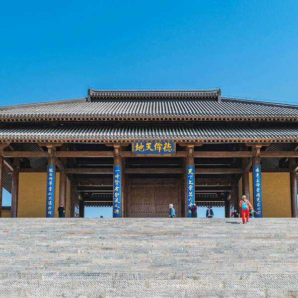 从曲阜高铁站驱车前往尼山圣境景区只需要半小时的车程,景区的大门就像是一条时光和身份的穿梭机,在这里穿一身汉服瞬间穿越了一般神奇……景区内可乘坐摆渡车到达各个参观点,先到达核心景区宫像区,站在尼山脚下仰望72米高金光闪闪的孔子像,一位“可亲、可敬、师者、长者、尊者”的形象让敬畏之心油然而生,象征孔子“弟子千,贤者十二”,基座高度为18米,海拔高度273.8米,目前是世界最高的孔子像。这里是孔子临川慨叹地,一声“逝者如斯夫,不舍昼夜”,声震长河,是《史记》记载处,一句“孔子生鲁昌平乡陬邑”,声闻千古。孔子湖的圣水静静地流淌着,守着这一方圣土。沿着环湖线路走至景区观水台,毓圣门每天都有定时的水幕表演,为景区增添了很多生机和活力。孔子圣像前的观水台明礼打卡点成了很多人的拍照点,随手一拍就是一幅古代画卷。沿观水台前往泮水桥,整理衣冠,端正仪态,踏过泮桥,进入学宫的神圣殿堂,亲身感受一下文化艺术的博大精深。超级可爱的卡通人物形象小尼和小妮,正是景区的吉祥物,在每个角落迎接着大家。经过泮水桥后一路经辟雍广场、朝拜大道到达景区而立门,三十而立,欣赏景区的迎宾礼表演10分钟,而立门在建筑风格上属于春秋时期高台式的建筑样式,说起而立门,大家都会不由自主地联想到而立之年,然而这也正是而立门的名字由来。经过金声玉振广场,走过天命大道,就来到了孔老夫子脚下,这里的孔夫子铜像是世界最大最高的孔子像,72米高的孔子像伫立在尼山,远眺世界,可沿着台阶拾级而上,俯瞰孔子湖和景区。位于孔子像边上的大学堂更是吸引了一大批人,它是一座思想宫殿,不同于建于平地上的建筑,依靠山体之势层层退后形成错落的形态。孔子大学堂是一个展现儒家文化的艺术殿堂,传授的是孔子的核心思想“仁、义、礼、智、信”,走入其中,更是被眼前的精美设计所震撼,大量使用廊柱、穹顶等建筑手法,集合殿、堂、厅等中国传统的建筑形式, 既充满传统文化元素、又富有创新意识的传世文化建筑之作。参观顺序推荐:集贤厅——大学之道——七十二贤廊——仁义礼智信——先贤廊——礼乐堂
