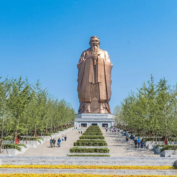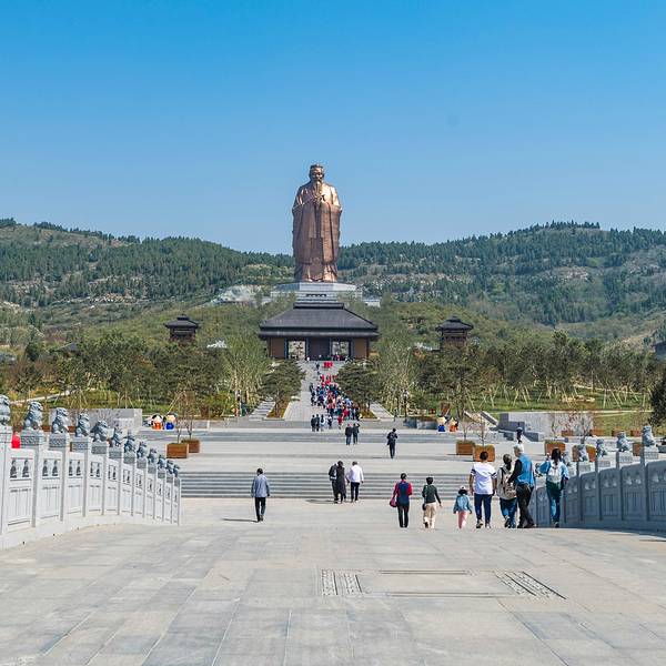 从曲阜高铁站驱车前往尼山圣境景区只需要半小时的车程,景区的大门...尼山,位于山东省曲阜城东南60华里,沂水环山西流,昌平山隔水而峙,这一带相传即是孔子父亲叔梁纥曾管辖的陬邑故地,也是千古文圣孔子的诞生地。