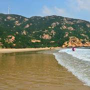 人不多,景色不错,海水不算干净,离市区较远