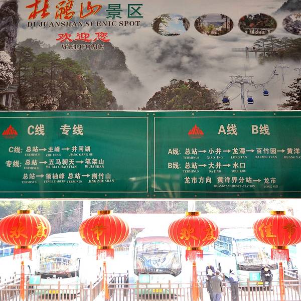 井冈山景区分4条游览路线,去不同方向的景点:比如上午你想去龙潭 大井等这是一条线,下午想去杜鹃山这是一条线;明儿个想去茅坪八角楼等这是一条线。。。。。甭管你坐哪条线的大巴,最终还得回到总站这个“集散地”来。