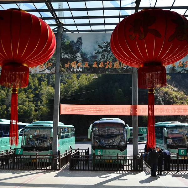 购票进入景区,面前是一大排整整齐齐地绿色大巴,只有我一个游客。