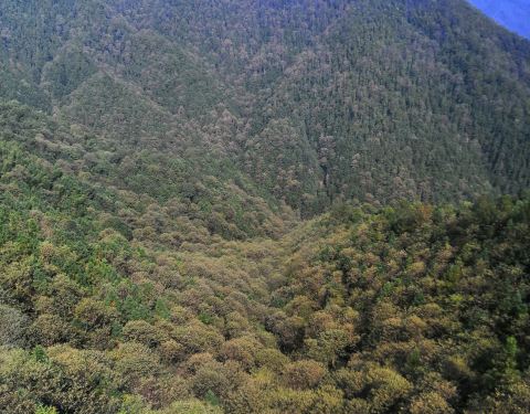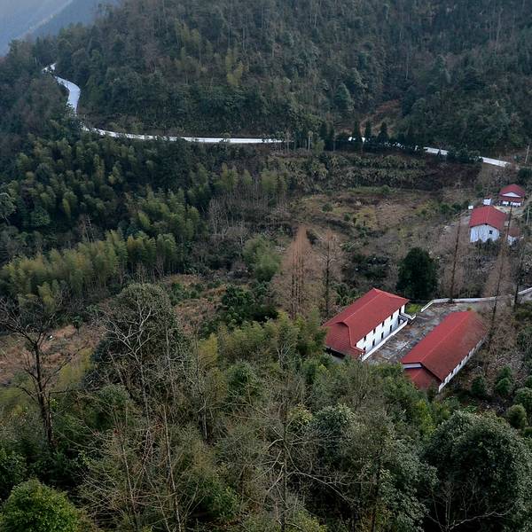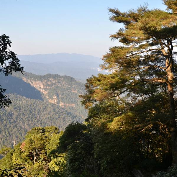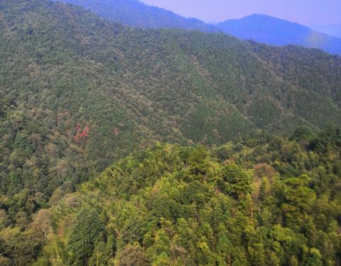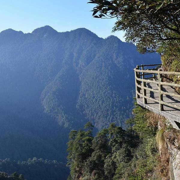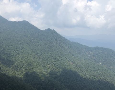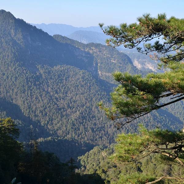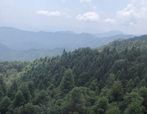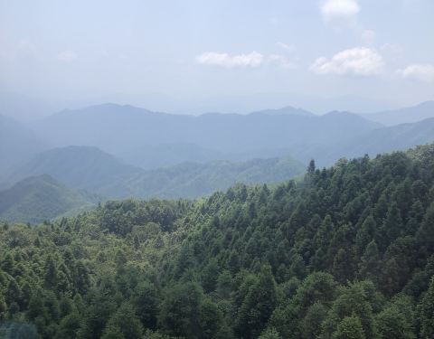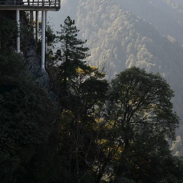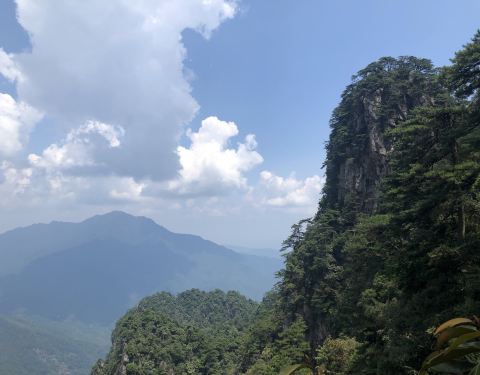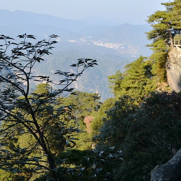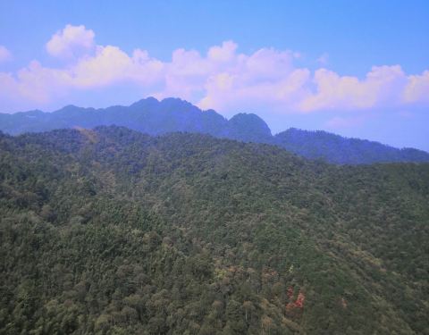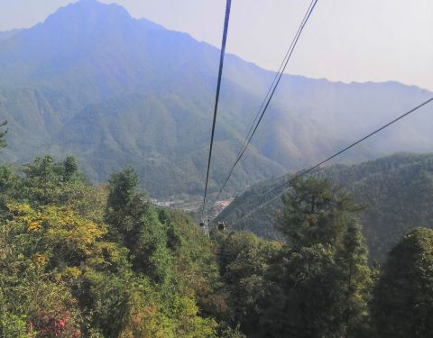 乘索道上山,俯瞰下方层叠的青翠山峦,非常壮观。 四五月漫步“十里杜鹃长廊”,如同漫步在杜鹃的海洋中。