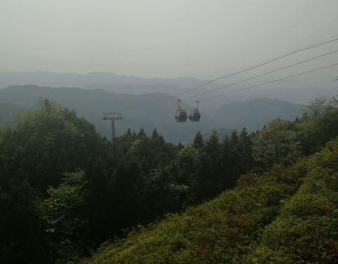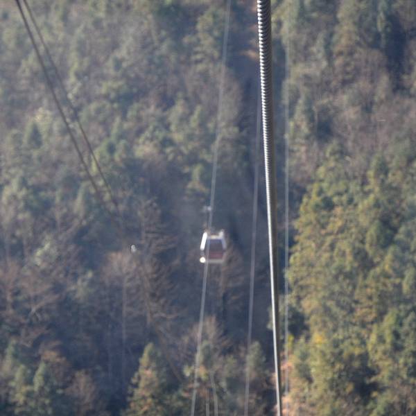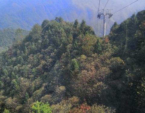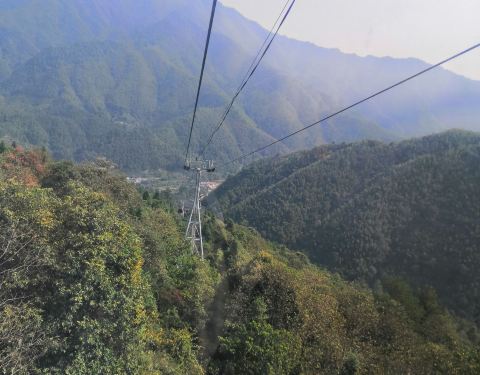 没想到杜鹃山索道有5.8公里长!我一个人坐在容纳8人的轿厢里又吃又喝连拍照带晒太阳又眯了一会儿,还没到!我计算了一下,单程就需要超过半小时。
