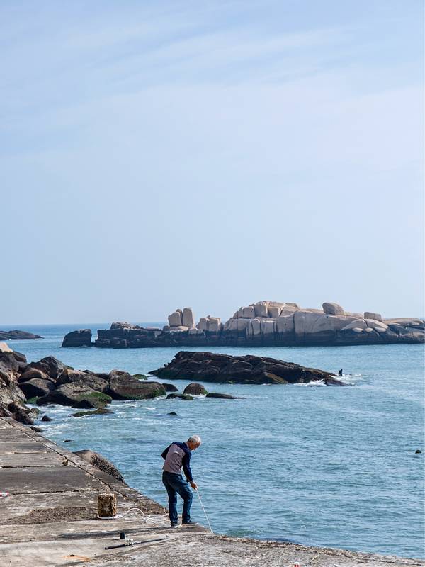 由于东极岛是一个还没有被开发的小岛,所以岛上也没有正规的码头,就是在一个岸边登陆船只,此时,小岛周围的海域里的海水已经全部是蓝色的了,相信这种颜色的海水在国内还是非常少见的。东极岛的路都是当地居民自己开发出来的,路很窄,岛上没有汽车,全部都是靠步行的,站在最高点,可以遥望到整个东极岛的岛景,有些场景在之后上映的《后会无期》中也出现。因为东极岛有着别具一格的风景,在城市内生活久了,就会非常向往这种与世无争,宁静的生活环境,看看海景,吹吹海风,当你看到这份景色,自己的那颗心也会变得更宽广。怎么参观东极岛?根本不需要知道怎么参观,东极岛的面积非常小,只需要在东极岛的道路上行走,看看旁边的风景,那就是参观东极岛了。东极岛除了可以欣赏到非常美丽的风景之外,还可以在岸边进行海钓,即便是你没有带海钓的工具,当地的岛民也会提供,好一点的海钓鱼竿是20元一根,差一点的竹竿是5元一根,还是很便宜的,还会提供鱼饵。这里的鱼大多都是虎头鱼,一天的成果可以给晚餐加点菜了。东极岛没有什么遮挡物,走在岛上的道路上,到了日落时间,就可以很清楚的看到日落的景色,非常迷人。小贴士