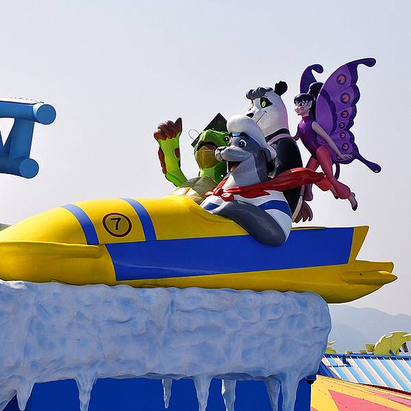 出了水族馆可以乘坐海洋列车到动感天地。这里有很多游乐设施哦。