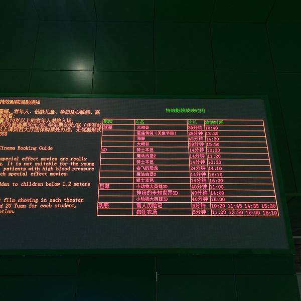 3. 各特效影视剧场不适合幼儿和老人,1.2米以下的儿童和70岁以上的老年人不能入场,需要注意。