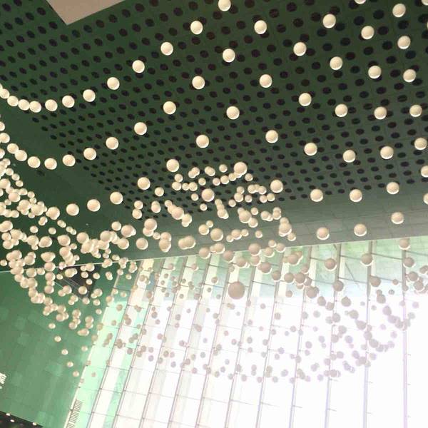 中国科学技术馆周末的早上,九点四十到达,不用等,到西门直接进馆。入口就有超级好看的顶灯会变色和改变形状,很吸引孩子的眼球。