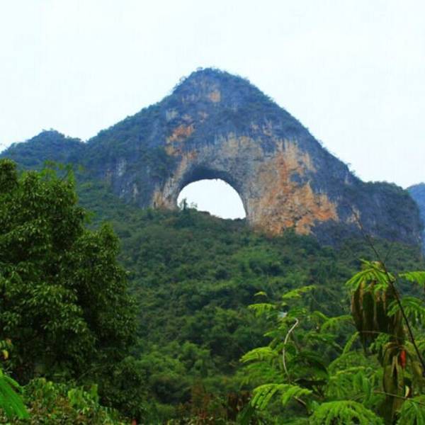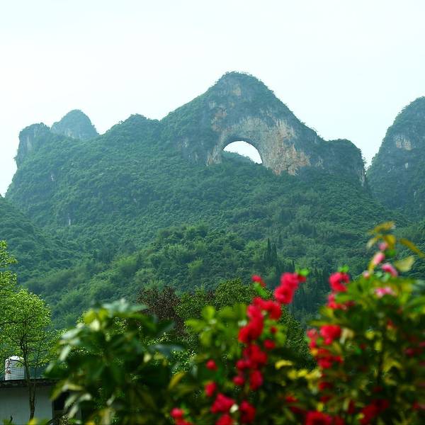 阳朔的月亮山景区是山体中间镂空的部分像个月亮。