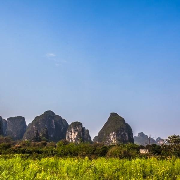 景区距离阳朔县城有九公里的距离,可以从县城租一辆自行车,一路骑行过来。除了美丽的月亮山,沿途众多古朴的村庄环绕,大片的稻田色彩艳丽,还有奇秀的山体相伴,亦是一场非常难得的美景体验。