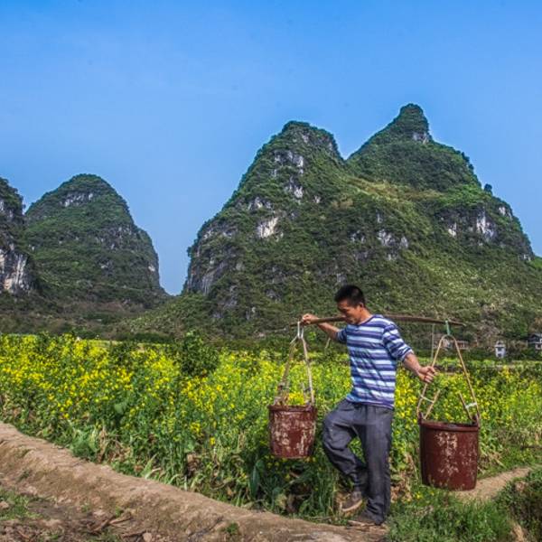 除了奇特的景观,周围美丽的村庄,热情的村民,同样令人印象深刻。他们兢兢业业地在田间劳作,如果遇到什么问题,他们都会热情地深处援助之手。周围的偶然还有一些山上的村民出售一些自己耕种的水果,价格不贵,服务热情,还会热情的介绍关于阳朔有趣的历史故事。据说,以前有一位当地村民还在这里救了一位外国游人,也被人称为“月亮妈妈”。