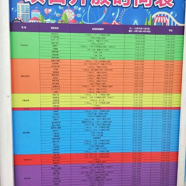 1、为确保安全,公园可能遇恶劣天气、特殊活动、游客过多、设备故障检修等原因调整部分设备和表演的时间或闭园,以当天公告为准。