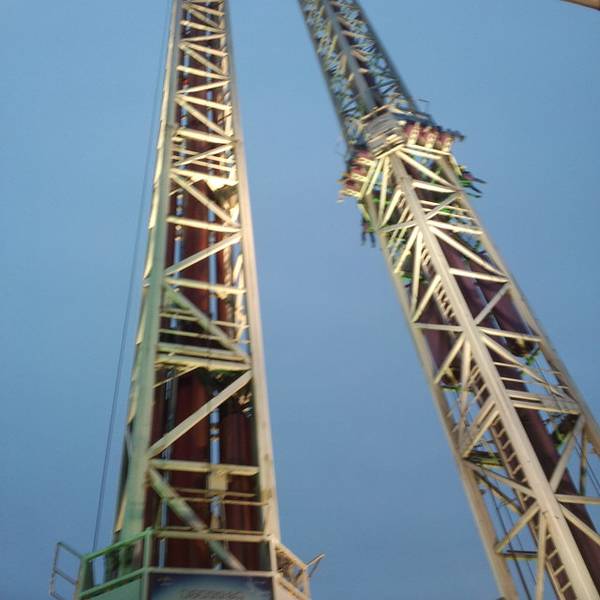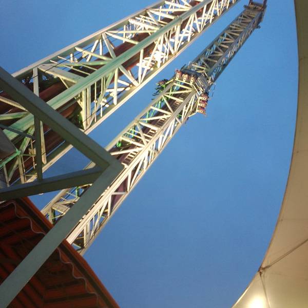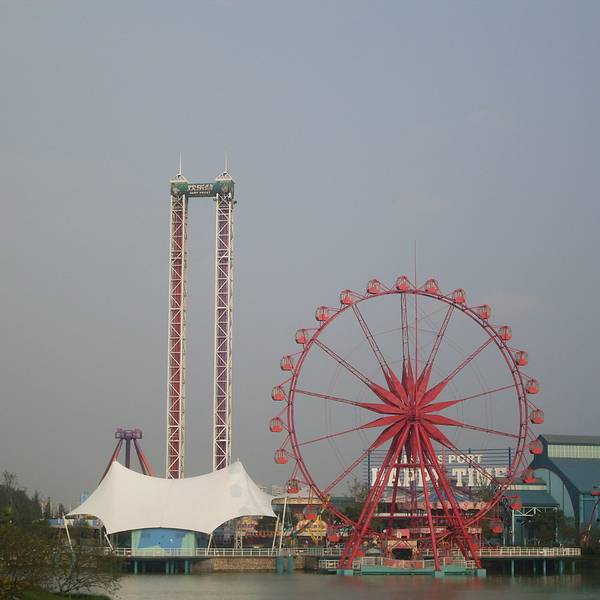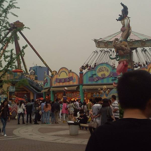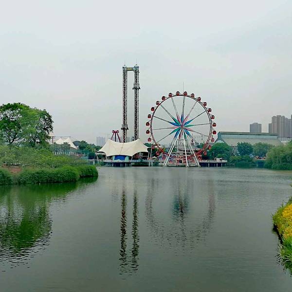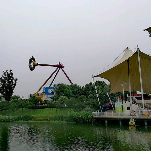 园区里比较好玩的就是过山车、跳楼机和CS,其他的玩着很一般,不过摩天轮的话可以排队坐一下,高空俯视两边园区景色的感觉还是不错,但是天气不好的话看着也恼火得很。过山车速度不快,落差也不大,玩着还行;但跳楼机的话个人建议有恐高症的还是别去尝试了,玩着人反而难受。