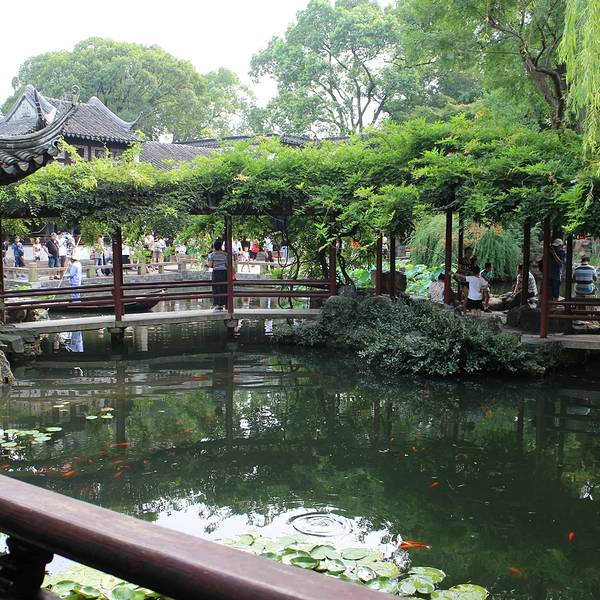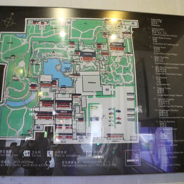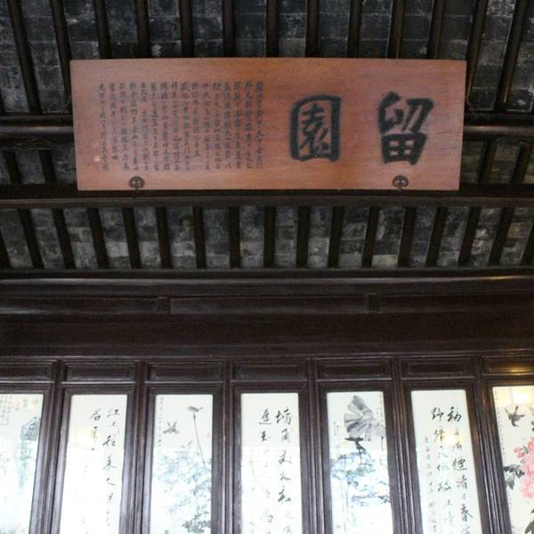 留园与苏州拙政园、北京颐和园、承德避暑山庄合称中国四大名园,园内亭台楼阁、奇石曲廊,加上满园的绿意和一汪碧水池塘,一步一景,景致很是秀气。在这里,可以体会一种园林山水之间的平淡气息。 留园始建于明万历二十一年(公元1593年),为“太僕寺少卿”徐泰时的私家园林,当时称“东园”。清乾隆末年被刘恕所得,扩建后改名“寒碧山庄”,时称“刘园”。清光绪初年,官绅盛康买下此园,改名为“留园”。 全园分为四个部分,在一个园林中能领略到山水、田园、山林、庭园四种不同景色。中部以水景(小池塘)见长,围绕小池塘分布着可亭、远翠阁、曲溪楼等;东部以曲院回廊的建筑取胜,有佳晴喜雨快雪之亭、林泉耆硕之馆、冠云楼等十数处建筑小品,号称“留园三宝”的冠云峰(太湖石)、楠木殿和鱼化石都在东部。 冠云峰形状瘦长,集太湖石“瘦、皱、漏、透”四奇于一身,相传是北宋末年花石纲中的遗物。楠木殿位于五峰仙馆,殿内的柱子用楠木制作,但在抗战时受到了破坏,后来不得不用水泥把楠木柱糊住,外面又刷上漆。鱼化石是直径一米左右的大理石,产于云南点苍山山中,表面的纹理像一副山水画。 留园的北部和西部相对开阔。北部具农村风光,并有新辟的盆景园;西区则是全园最高处,有野趣,以假山为奇。池塘南部的涵碧山房与明瑟楼,是留园的主要观景建筑。 留园不是很大,沿着700多米长的曲廊和园中小径,可以走遍全园,园中还设有导览图立牌。