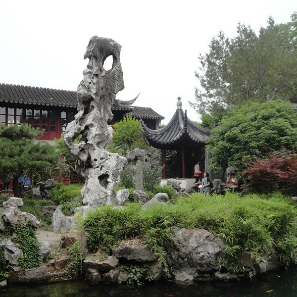小家碧玉式的苏州园林,观赏园中三宝:冠云峰、楠木殿和鱼化石。