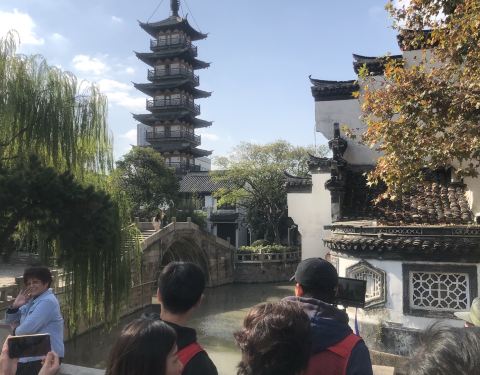 嘉定古迹。 有水有桥有塔,老街很美。 登上法华塔能俯瞰嘉定全景,算是州桥老街的制高点了嘉定古迹。不过其实就是塔基是旧的,塔身也是后面修复的了。 登上法华塔能俯瞰嘉定全景,算是州桥老街的制高点了。 有水有桥有塔,老街很美