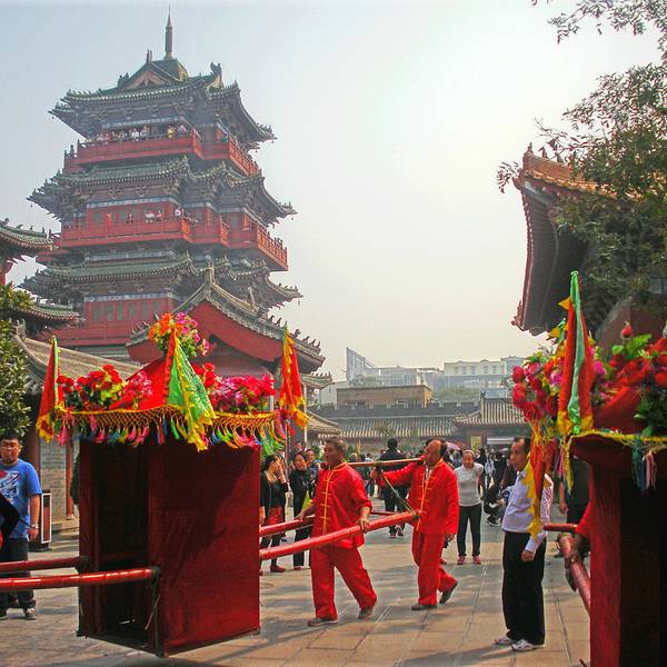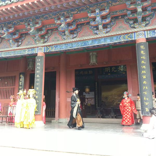 包公主持仪式,向开封府的百姓代表以及外国使节颁布新火,然后进入开封府参观。开封府虽然是重建的一个景点,但是文化底蕴深厚,在景区内都会定点表演节目,每天有十几场,早上的包公怒斩陈世美是一个深入人心的故事,围观的观众比较多,天庆观内的太极功夫表演,以及榜前捉婿都非常有意思,榜前捉婿是一个与游客互动的节目,北宋年间每到发榜的日子,开封城内的富户都在榜前为自己挑选女婿。4月初的开封府内鲜花盛开,桃花和海棠花都非常漂亮。 展开