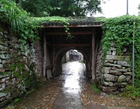 桃渚城,东南距东海仅10余公里,始筑于明洪武二十年(1387年),是专门为抗倭而设置的千户所所城。城高4.5米,周长1366米,设有三个城门。