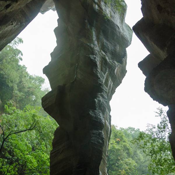 来到吼山的时候正好赶上下雨,整个景区里就我一个人,静静地享受雨中的美景。景区里绿化的很好,进入大门就是一大片草地,看上去非常舒适。往里边走才是吼山这一座小山,不过由于古代开山采石,这里还剩下了一片片的垂直的崖壁和一根根造型奇特的石柱,在别的地方并不多见。