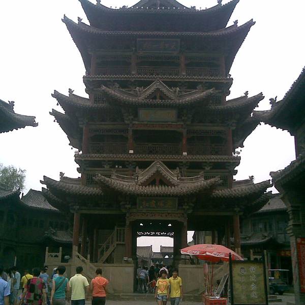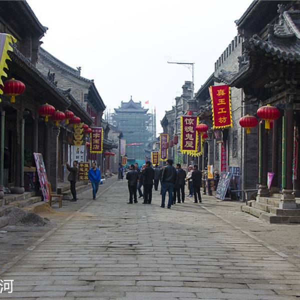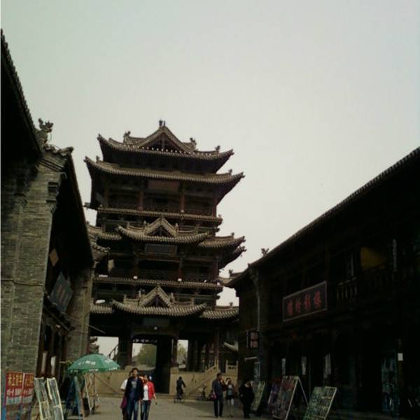 初冬季节来到这里,游客不多,景区内主要是两条十字交叉的大街,路边全都是山西当地风格的古建筑,在十字路口一座市楼是最高的,不过去的时候正在维修。大街上虽然有许多商铺,但是并不怎么热闹,依次开了好多家鬼屋,整体档次不高。