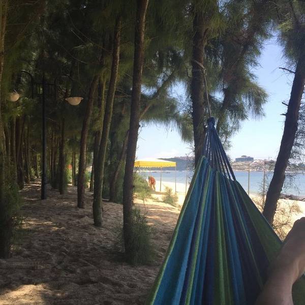 听说马銮湾,白天听说要收费的,所以我们晚上进去虽然不收费.但从门口进去到沙滩也有一段距离..如果大家喜欢热闹可以住马銮湾,毕竟开发最好,周围设施齐全一点..而像我们这样想度假的,想悠闲游的,可以住金銮湾的海边度假小区,选间好的公寓或者别墅..晚上三五好友或者一大家子在公寓吃吃喝喝玩玩地中海式两房一厅一出小区就看到这独特的朋友圈..哈哈晚上的马銮湾