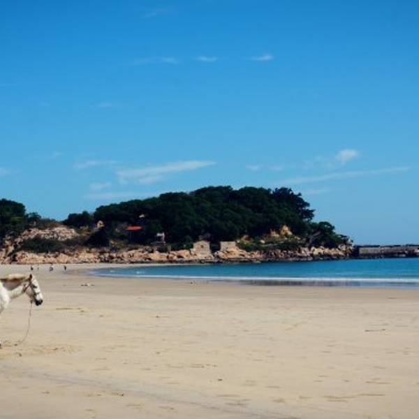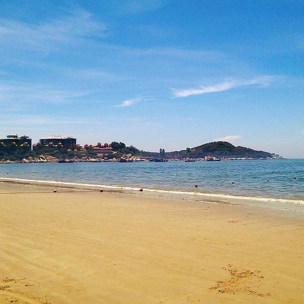 马銮湾位于东山岛马銮村东面海滨,是一个天然秀丽的大海湾。它的海湾长2500米,呈现月牙形,北角有妈祖山,东南角有赤屿、头屿、二屿、三屿等。由于马銮湾的海水很温顺,它并没有暗礁、且污染和风浪都较小,而且沙滩细软、洁白,有圈起来的海滨浴场,非常适合游泳玩耍。 当然,因为团队游来东山岛,基本是来马銮湾,而且它相对是东山岛的几个海湾中比较热门的,所以节假日的话,人会比较多。有兴趣的话,可以离开鼎沸的人群,走向远处的礁石滩,捉蟹、捡海石,但是要注意完全。 除外,马銮湾还有海上运动俱乐部,游客在享受阳光、海水、沙滩的同时,还可以领略一下帆板、冲浪运动的刺激。比如红珊瑚潜水俱乐部,如果坐帆船或双人水上自行车到海上观光, 60元/每人(价格供参考),大约20分钟。俱乐部也有潜水和摩托艇等项目,可到海滩上具体询问价格。 天色暗下来后,会有浴场管理人员催着游泳的人上岸,为了安全,晚上海滨浴场是无法游泳的。住岛上的游客,可以先回酒店冲个澡,然后找个海边的大排档享受晚餐,海边的拍档比较货真价实,并且海鲜比较新鲜,价格也很实惠。