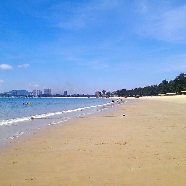 而金銮湾尚未开发,海水质量更胜一筹,但是配套设施几乎没有,最糟糕的是如果乘坐公交车到金銮湾站,需要走上非常长的距离。原来决定去金銮湾,没想到下车之后走了半个小时还是不见海滩,还好遇到了好心的驾校司机,直接开车把我们送到了马銮湾!