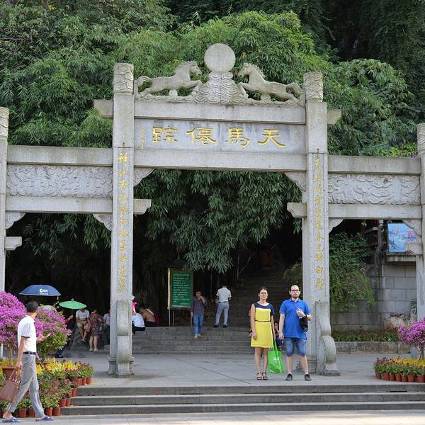 这座山东西走向,长五百米,高达海拔二百七十米,是市区内最高的山。它东西突兀,中间凹陷,形如马鞍,因而得名。古代称天马山,因为雄峙江畔,很像呼啸腾空的奔马,所以有“天马腾空”的美誉,是柳州八景之一。游人乘坐旅游索道缆车,可以从鱼峰山到达东面的马鞍山公园。山上名胜古迹很多,相传古代八仙中的铁拐李和吕洞宾曾在此山下过棋,至今山上还留有一尺多长的仙人足迹和棋盘石,成为“仙弈传情在马上”,是历代游人玩赏的好地方。历代名人题咏颇多,游人在此边游山,边品诗,非常有趣。
