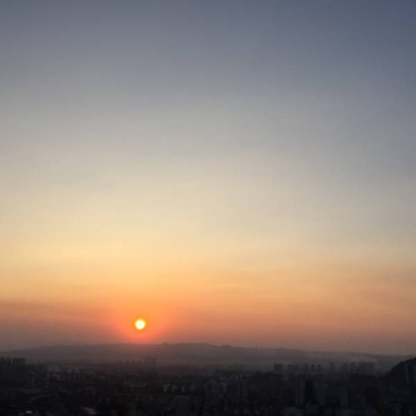 太阳缓缓的升起来了,像一个老太婆,弯着腰,一点一点的背着东西上来,给我们来照明来了.