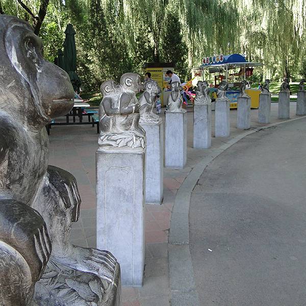 动物园的正门非常漂亮,不觉得是个动物园的门,更像是某个名胜古迹的大门,非常气派。售票处在正门右手边,门票15元,在门口的时候忘了买联票了,里面的熊猫馆、企鹅馆都是单收费的,分别是5块,10块,进去又买了一次。动物园非常大,我们是先去的东区的熊猫馆。但是只见到了一只熊猫,其它的都躲在里面,等了好久也不出来就放弃了,这里的熊猫可能是太调皮的缘故,身上脏脏的,白色的毛全变泥土色了。憨憨的,除了坐着吃竹子就是躺着吃竹子。北京动物园最多的大概就是猴子了,各种各样的猴子,还有猴山上面更是多得不得了,一会儿冒出来一只,而且都特别灵性,我们看的时候两只大猴子正在为了保护自己的孩子相互对峙呢,特别可爱。还有这幸福的一家子。我们去的时候已经是下午了,好多有表演的场馆都已经关门了,很遗憾,都没有看到,因为动物园太大了,等我们逛到后面有些园区的时候,都没得看了,大象、两栖类的都没见到。狮虎山的这只老虎看起来已经非常年老了,特别瘦,感觉就一层虎皮搭在身上,走路也特别慢,一点老虎的威严都没有了。动物园内有一条河,不过河水发臭了。园内还有一大片区域正在建设中,不知道要建什么。五点多的时候,整个园区开始给树木喷洒农药了,好几辆大车开过来喷,大家都纷纷撤出来了,可能是去的时间点不对,好多东西都错过了,感觉里面也没什么好看的,跟其它动物园一样普通。