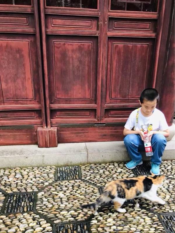 孩子喜欢猫猫狗狗类的小动物,豫园里不乏小野猫之类的小动物,这些小动物不怕人,逗逗他们也还是蛮自得其乐地. 展开