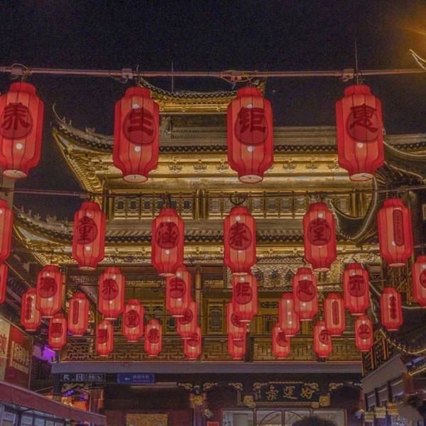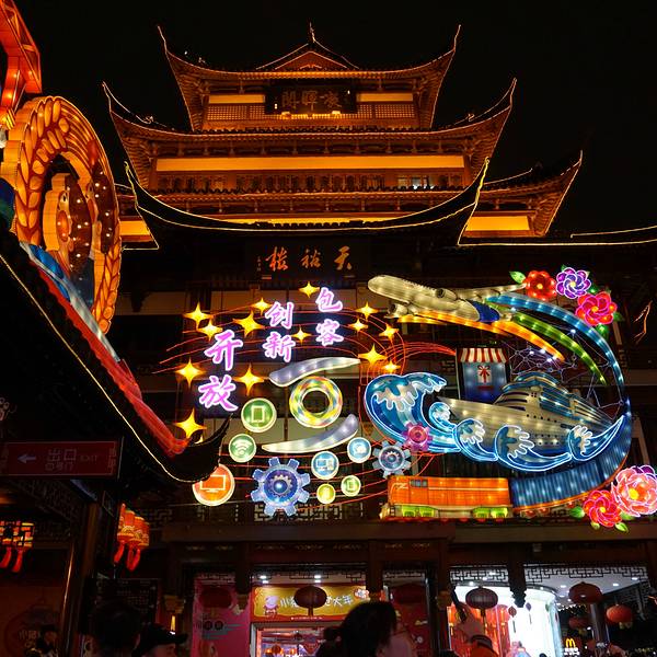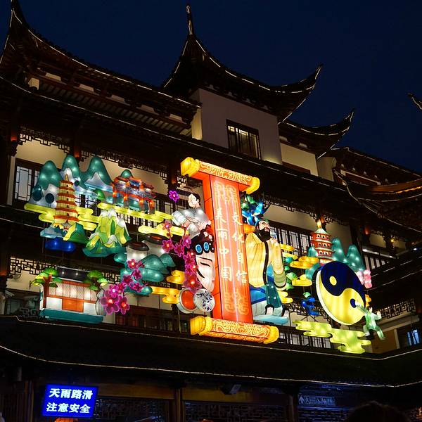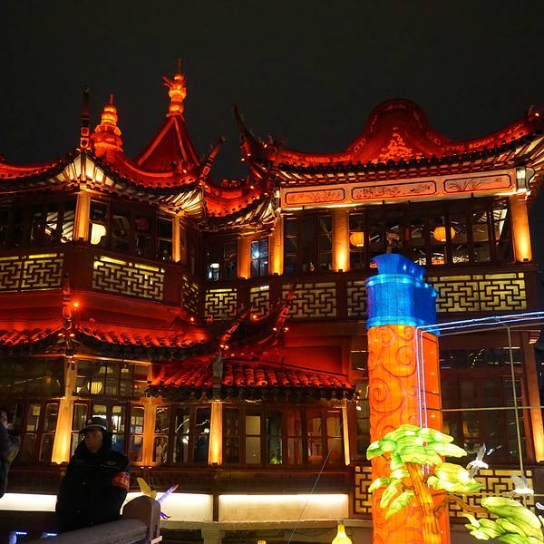 说到城隍庙,就不得不提豫园。江南古典林园风格的豫园,不仅有着古色古香、雕梁画栋的古典建筑,夜晚配上彩灯更是美轮美奂。