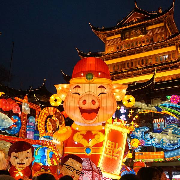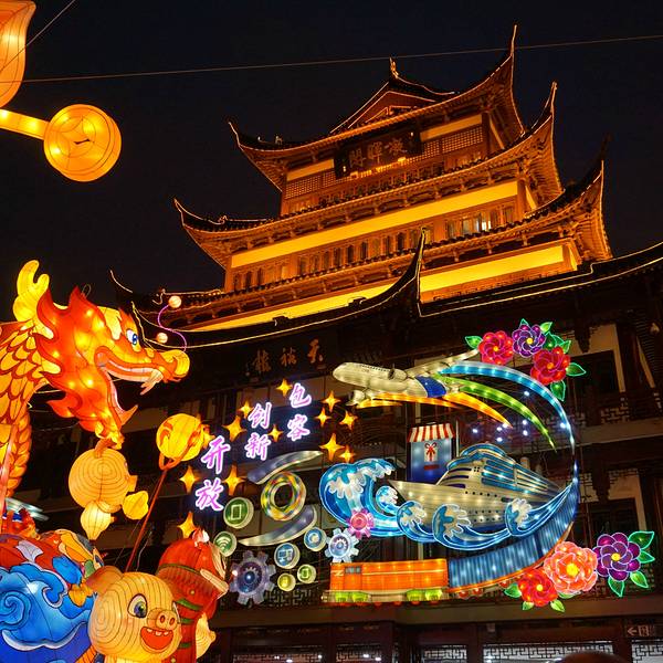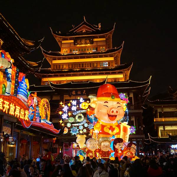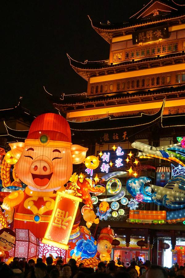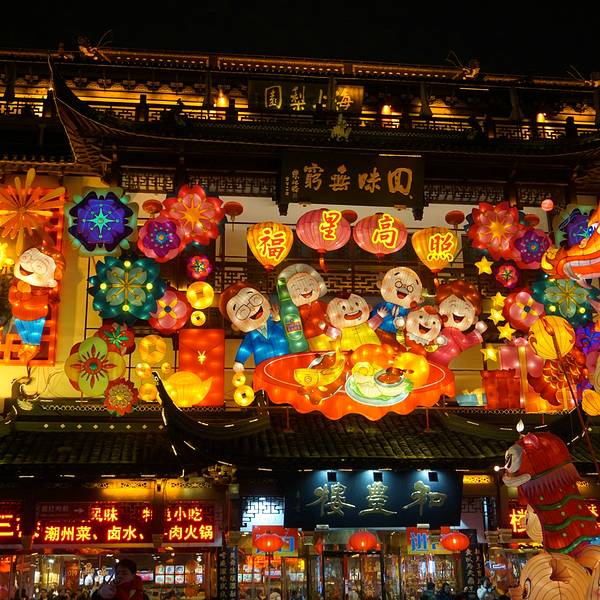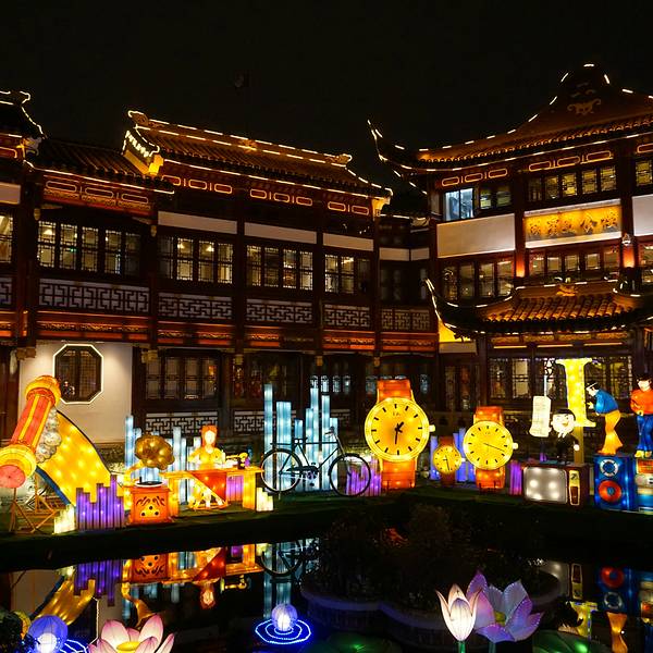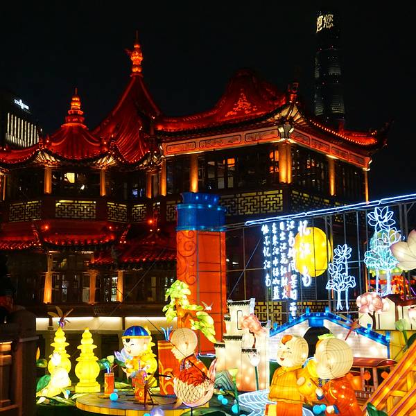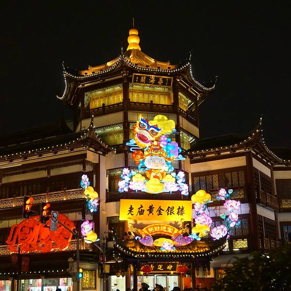 金骆驼 似乎为了响应“鲤鱼跃龙门”的寓意,今年池子里的锦鲤格外多,且色泽鲜亮非常美丽豫园可以说是魔都最有年味的地方了,一年一度的豫园灯会更是不可错过。豫园新春民俗艺术灯会,每年新春佳节期间在豫园商城举行,时间从年前持续到元宵结束,为期一个月左右,元宵前开始封城收费。一直对灯会很感...豫园可以说是魔都最有年味的地方了,一年一度的豫园灯会更是不可错过。豫园新春民俗艺术灯会,每年新春佳节期间在豫园商城举行,时间从年前持续到元宵结束,为期一个月左右,元宵前开始封城收费。一直对灯会很感兴趣,便趁着元宵前的周末去了一趟,果然美不胜收。票是在网上购买的携程票,美团成人票48元,出示短信二维码即可,也可以现场直接买票,50元每人,现场每人可以领一份游园灯会图。交通很方便,地铁10号线到达豫园站下1号口出再根据地图导航即可。豫园商城的出入口较多,灯会入口有豫园新路入口(2号门)和百翎路入口(5号门),现场有很多志愿者和安保可以问。因为担心晚上人流量大,所以去的比较早,4点半左右就到了。这时候人已经比较多了,可想而知元宵当天是怎样一番盛况。考虑到天还没有黑,便在景区内的和丰美食楼直接点了自选。点的蟹黄灌汤包、蛤蜊炖蛋、豆腐花和蒸饺,一共62元。口味一般般,不建议在景区内吃。吃完出来天已经完全黑了,美食楼出来直接是华宝广场的灯会主题区,主要展现了传统生肖新年的祝福文化。整个广场很是喜庆,主灯前合影的家庭很多。华宝楼东阳台展现的中国的文化建设和精神文明建设。九曲桥是每年的重头戏,每年九曲桥的队伍都排的很长,今年也不例外。今年的九曲桥广场以邮票形式呈现的灯组,巧妙展示了上海“四大品牌”的战略发展,且桥头桥尾形象设置了“龙门”,桥头“江南忆”再现古典情怀,颇有从上世纪进入新世纪的年代感。似乎为了响应“鲤鱼跃龙门”的寓意,今年池子里的锦鲤格外多,且色泽鲜亮非常美丽。 展开