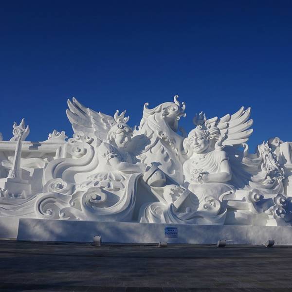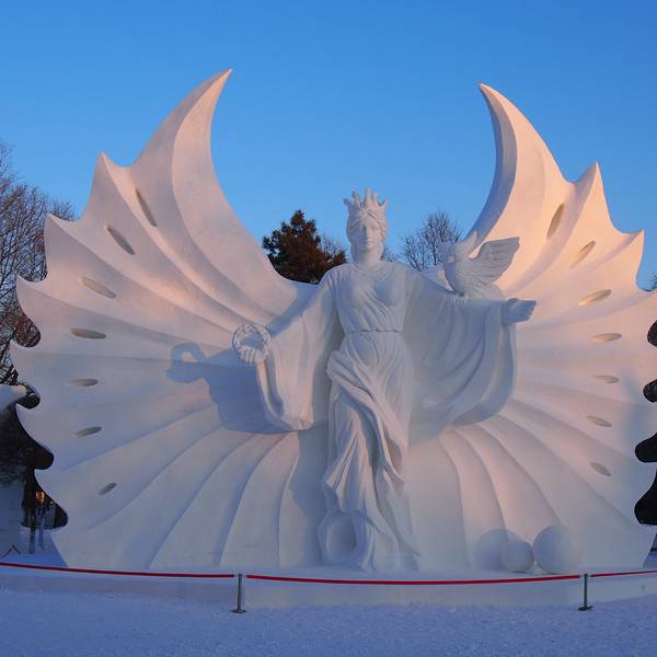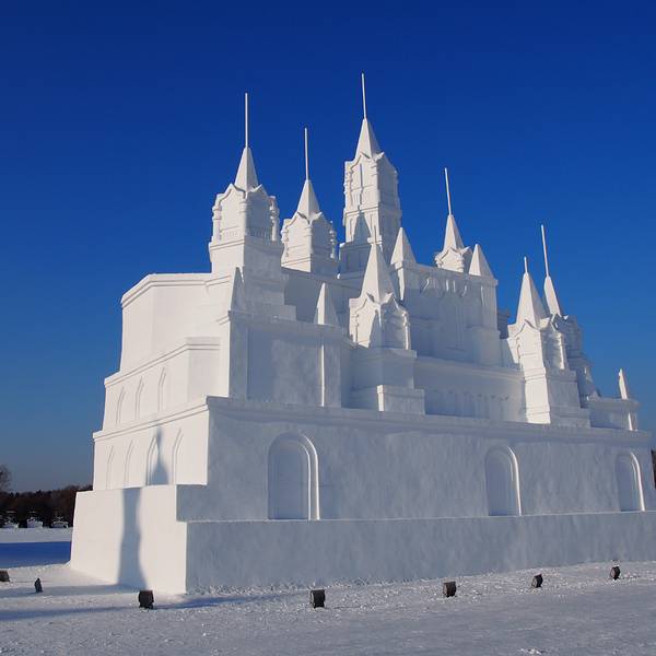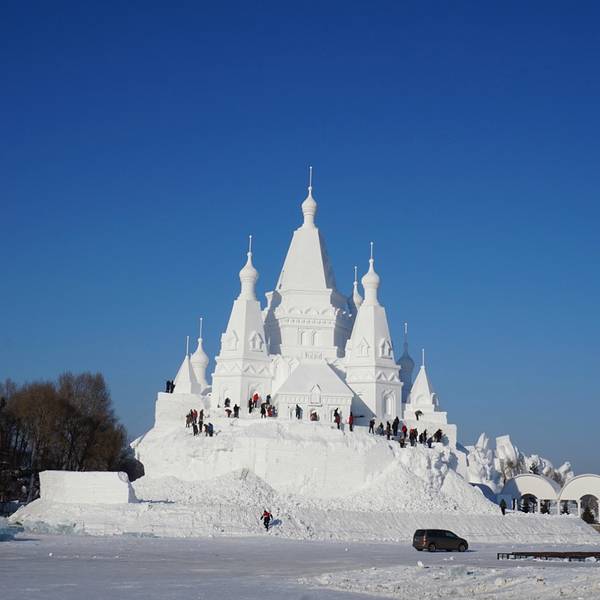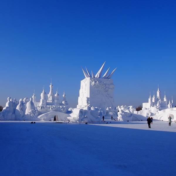最值得看,雪雕,每年一度的太阳岛国际雪雕艺术博览会在太阳岛举行,先用造雪机造成大块的雪,然后很多艺术家跟工人会把它雕塑成各种形态,纯白色的趁着蓝天也挺美的。