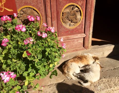 在美丽的房间拉开窗帘,看到美丽的庭院,迎来丽江的清晨。今天我们去逛白沙古镇。这里还有岩画。