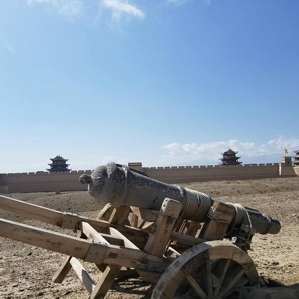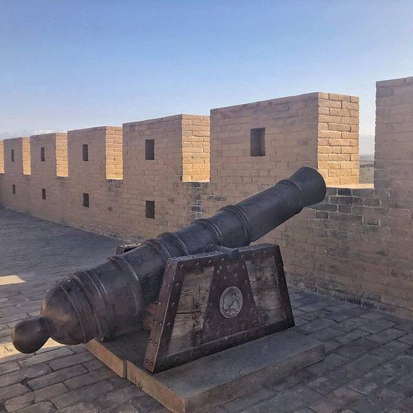 绕着嘉峪关的城楼走一圈。上面有仿制的土炮和弓箭等等。