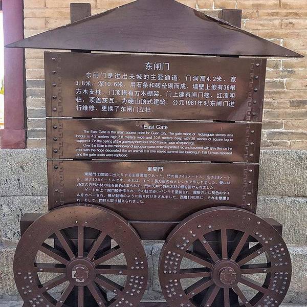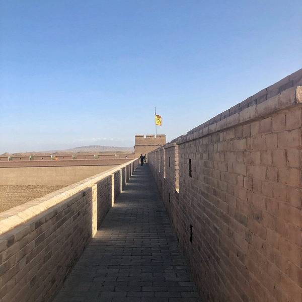 嘉峪关 关城景区给我们的感觉就是一个大公园,绿化建设做的很好,由于时间限制,我们直奔主题,直接走到关城入口,游览从东闸门开始,“天下雄关”牌匾。关城分为内城、外城,有三个主要的 大城 楼,城墙上还建有箭楼、敌楼、角楼、阁楼、闸门楼等等建筑。关城内建有游击将军府、井亭、 文昌 阁,东门外建有关帝庙、牌楼、戏楼等,各自都有历史和特色,值得一一参观。由于时间有限,我们途经柔远门后直接登上城墙,上了带着有“ 嘉峪关 ”字样的关城。嘉峪关 关门。身后的 嘉峪关 城楼。登上城墙远眺, 祁连山 麓在远方连绵,脚下的戈壁草原壮阔,顿生历史的悲壮之感。对城墙并不陌生,来到嘉裕关后,还是被这座历经一百多年才建成的关城震撼到了。同为明城墙,它与 南京 的中华门城堡有相似之处,又有不同,他除了 西北 的粗广豪放之外,也不失精细巧妙,尤其在战术结构上,迂回曲折。从城墙上可以看到景区内还有很多小摊,多为民俗历史特色,有古装合影,卖书法卖字画等。还有一个巨大的操练场,观望着应该是用于商业活动的,白天用于各种骑射运动。这里可以看到“关照”的由来,原来 嘉峪关 正式关照的最初使用地点。嘉峪关 关城是明长城西端的第一重关,也是古代“ 丝绸之路 ”的交通要塞。关城始建于明朝,是万里长城沿线最为壮观的关城。因地势险要,建筑雄伟而有“天下第一雄关”、“连陲锁钥”之称。出了关城后,我们乘坐景区短驳车回程,行至 嘉峪关 城墙侧面,驾驶员和我们说这里是拍摄 嘉峪关 最佳位置,背后是 祁连 雪山。在 嘉峪关 结束游览后,我们在城内找了一家鱼火锅,团购,菜量很大。